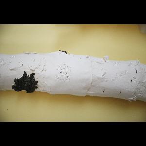 Extended Label Info: These delicate birch bark trees are sculptures created out of porcelain. LED lights within each cast a soft glow, highlighting symbols on each tree that were created in the style of birch bark biting. Known as “wigwas mamacenawejegan” in Ojibwa, birch bark biting is produced by folding a thin sheet of birch bark and biting into it to mark or pierce the surface to create a symmetrical design, and often used as sketches or templates for beadwork. In the past, bitings were often discarded; today, they are collected as artworks. Artist KC Adams references this tradition to reflect her cultural roots. However, instead of beadwork patterns, Adams recreates corporate logos that are part of her contemporary, urban life. By embedding logos for companies such as Apple Computers, the Bay, Manitoba Hydro, Safeway, the Olympics, the Winnipeg Art Gallery or the Royal Bank of Canada, Adams presents a critique of contemporary society, which is very driven by consumerism and the influence of powerful companies. It is also a metaphor of her experience as a contemporary Indigenous person, balancing between pop culture and her historical cultural roots. KC Adams (1971 - ) Born in Yorkton, which is part of Treaty Four territory, Adams is an Oji-Cree artist currently working in Winnipeg, Manitoba in Treaty One. Adams earned her BFA in Studio Arts from Concordia University. She works in various media that include sculpture, installation, drawing, painting, photography, ceramics, printmaking, and kinetic art. Her work has been shown in numerous solo and group exhibitions throughout Canada, the United States, Europe, and Australia. Her work is in many permanent national and international collections.
