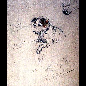 Extended Label Info: Ina Maud Sheldon-Williams had a fine eye for detail and spent many years refining her practice. She, not unlike her husband Henry Inglis Sheldon-Williams, preferred to work in pencil, watercolor and oil paint, reflecting the style of realism that was popular during the turn of the twentieth century. This drawing is a study of a dog, that perhaps Ina might have painted in full. The image is simple and quick as it is a study for a larger piece. What is wonderful about this study are the notes that dot the perimeter of the image. This is a rare occasion for viewers, letting them enter the mindset of Ina as she goes through the drafting stage of her artwork. The image is simple fresh, capturing the charming character of her canine subject. Ina Maud Sheldon-Williams was active from 1900-1950. She was the wife of well-known husband Henry Inglis Sheldon-Williams, who was a prolific painter and water colour artist in the early 1900s and a Canadian war artist in WW1. It is not known if she had any formal education in the arts but what her artwork indicates a refined practice and a fine eye for detail.