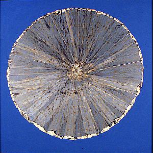 Extended Label Info: One of Saskatchewan’s most prominent abstract artists, Art McKay was instrumental in introducing abstract painting to the Prairies, known for his paintings created with stove pipe enamel over latex. Utilizing circular and rectangular formats, McKay created contemplative images reflecting his interest in Zen Buddhism. This can be seen in Untitled (petrified wood) where though it does not have the intricate designs of a Buddhist Mandala, its symmetry and repetitive patterning reflect its influence. McKay’s mandala includes an abstract interpretation of a piece of wood, highlighting the calming affects that nature can provide. As a member of the renowned group of abstract painters called The Regina Five, his use of non-traditional art materials has influenced future artistic practices in Saskatchewan and abroad. Art McKay (1926-2000) was born in Nipawin, Saskatchewan, settling in Regina in 1940. McKay attended the Alberta College of Art and Design in Calgary from 1946-48 and then at the Acedémie de la Grande Chaumière in Paris in 1947. In 1951, McKay returned to Regina to teach at the School of Art (Regina Campus, University of Saskatchewan). In 1961, the National Gallery of Canada organized the exhibition of “Five Painters from Regina”. The famous American art critic, Clement Greenberg, played a major role in McKay’s development, including him in the 1964 Los Angeles County Museum exhibition called Post Painterly Abstraction. His paintings are now part of many public and corporate collections, including the National Gallery of Canada (Ottawa), the Vancouver Art Gallery, Shell Oil Ltd., the Toronto-Dominion Bank, the Canada Council Art Bank, the and many others.
