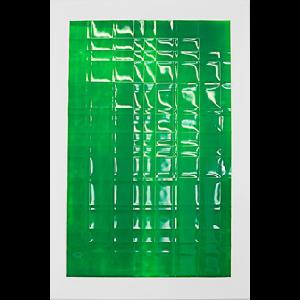 Extended Label Info: Marie Lannoo has developed a reputation as an outstanding abstract painter whose work explores ideas of colour, surface, reflection, as well as the perceptual and optical experience of looking at a painting, using multiple illusory devices. This work is one in a series of six in the RPL Permanent Collection. It incorporates light that reflects and bounces off its highly shiny surface to reveal a grid of folded lines. The intensely coloured acrylic paint is applied onto calcium carbonate coated “mineral powder” paper which is stronger than regular paper, and can stand up to the process of being folded multiple times. Similar work was exhibited in Who’s Afraid of Purple, Orange, and Green, a Dunlop Art Gallery exhibition that explored contemporary approaches to formalism and properties of the twentieth century modern art movement that was focused on pure visual form such as line, shape, texture and colour. Marie Lannoo (1954 - ) was born in Delhi, Ontario. She earned her BFA (1980) at the University of Saskatchewan, studying painting with noted abstract artist Otto Rogers, and participating in the Emma Lake workshops, the Banff School of Arts, and in Virton, Belgium. Currently based in Saskatoon, Lannoo is known for her rigorous experiments with the materials, creating abstract artworks that play with the physical properties of surface and light, including prismatic foil, interference paint, and mineral powder paper. Her artwork has been exhibited internationally, and is held in private and public collections, including the Canada Council Art Bank.