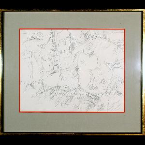 Measurements: in frame: 54.6 cm x 62 cm; work: 36 cm x 55 cm