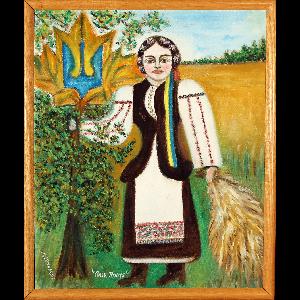 Extended Label Info: Molly Lenhardt's paintings were influenced by her early childhood memories and Ukrainian heritage. Her style is recognized as “folk art”, characterized by a self-taught style with strong cultural influences that expresses shared community and values. Lenhardt has received national acclaim for her depictions of Ukrainian clothing and symbols and in 2004, Lenhardt was posthumously recognized for her contributions to the community and culture of Ukrainian-Canadians, being designated as a “Nation Builder” by the Saskatchewan Provincial Council of the Ukrainian Congress of Canada. Molly Lenhardt (1914-1995) grew up near Lake Winnipegosis, Manitoba. As a child, she was encouraged to paint by her father. She moved with her family to Melville, Saskatchewan and continued to paint while studying Business in Yorkton (1930). As an adult, she and her husband ran a variety store in Melville (Fairway Confectionary), and Lenhardt often painted at the back of the store when she had time. Her paintings have been exhibited across Canada and were the subject of a retrospective organized by the Dunlop Art Gallery (Regina, 1990). Her work can be found in the collections of the Saskatchewan Arts Board, the Canadian Museum of Civilization (Quebec), the Mendel Art Gallery (Saskatoon), the University of Saskatchewan, and the MacKenzie Art Gallery (Regina).
