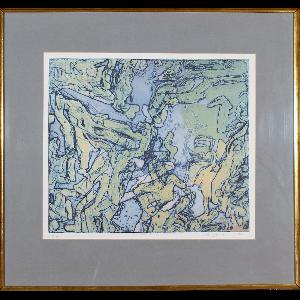 Measurements: in frame: 58 cm x 61 cm; work: 36 cm x 36 cm