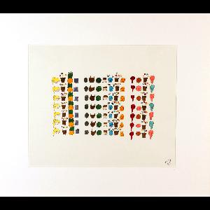 Extended Label Info: Working in a simple but expressive graphic style, Neil Farber illustrates a fantasy world populated by a diverse cast of characters that includes children, animals, aliens, and ghosts. His work combines a sense of innocence with the absurd. In this drawing, Farber uses black outlines and bold colours to create a loose and animated grid of characters, children’s faces, plants, and aliens. Although this image is playful and lightly humorous, in his other works Farber delves into darker human emotions and taboo topics, including depression, grief, and persecution. Neil Farber (1975 - ) was born in Winnipeg, Manitoba. He studied at the University of Manitoba, earning his BFA with First Class Honours (1997). In 1996, Neil Farber and fellow art students Michael Dumontier, Marcel Dzama, Drue Langlois, Jon Pylypchuk, and Adrian Williams founded an art collective, The Royal Art Lodge. This group met weekly to draw collaboratively, often working on a small scale and including text. The group disbanded in 2008, but Farber and Dumontier have continued a collaborative practice, and Farber lives and works in Winnipeg. Since then, Farber has had several group and solo exhibitions internationally, including London, Copenhagen, Düsseldorf, and New York City. Farber's work is held in private and public collections, including Museum of Modern Art (New York), Museum of Contemporary Art (Los Angeles), Olbricht Collection (Essen and Berlin), National Gallery of Canada (Ottawa), and Winnipeg Art Gallery (Winnipeg).