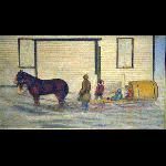 Blizzardly Arrival at Rural School Eva Dennis 1959 View |